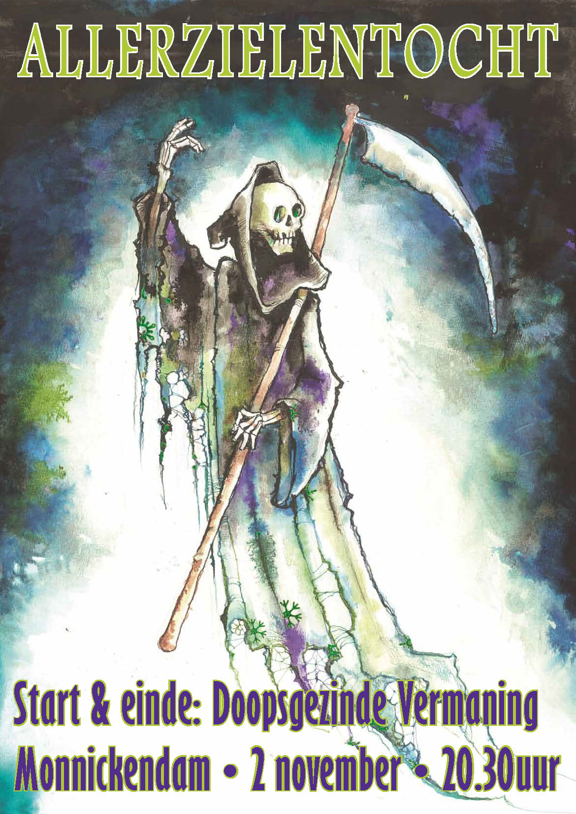 In Monnickendam wordt ‘Allerzielen’ op een unieke wijze verbeeld: in een heuse Dodendans. De dood danst door de stad, gevolgd door een slinger overledenen uit alle standen: een koning, de paus, gravinnen, maar ook eenvoudige sloebers en jonge mensen. Hij kan zomaar bij je aan de deur kloppen en je gebieden mee te gaan, mee te dansen. Prachtige kostuums, fakkels, trommels, fluiten en doedelzakken zorgen voor een Middeleeuws macabere omlijsting, maar toch.